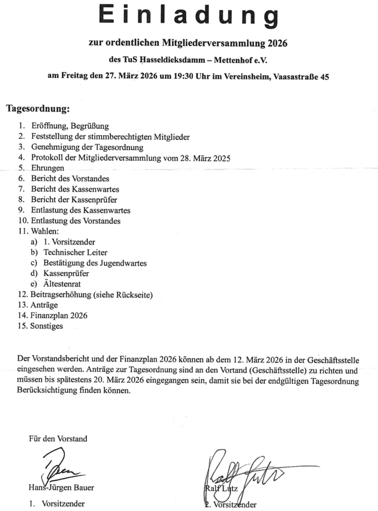 Einladung zur ordentlichen Mitgliederversammlung 2026